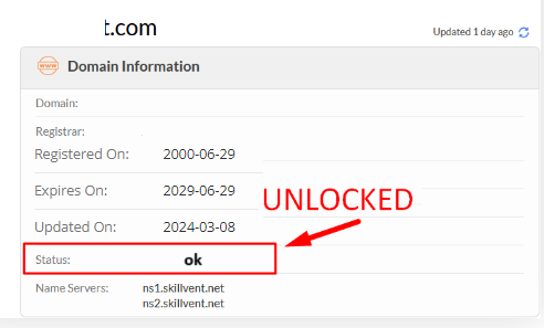 Domain in Un-Lock Status: Below image shows the domain Lock Status.